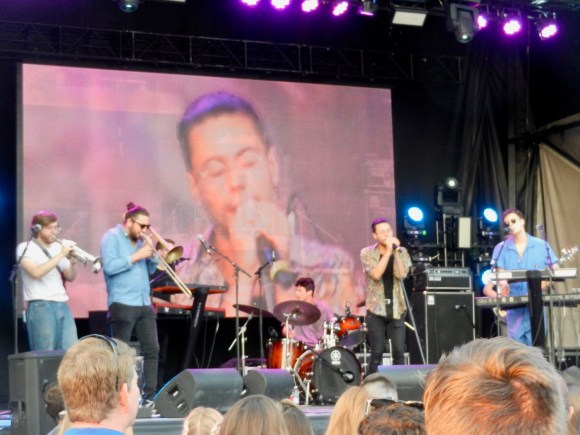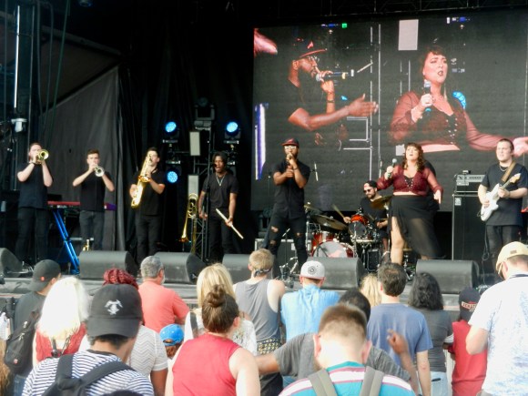 Just before they finished, I ducked out to the Videotron stage to catch a snippet of another local band about whom I’d heard good things. BlakDenim is a funk/soul/rap outfit that had the small outdoor stage jumping. There were horns, great energy, and a little bit of breakdancing. I was sold. And if it weren’t for the fact that I wanted to get a good spot for the next main stage act, I would have lingered longer.